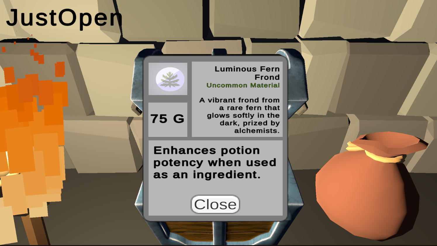 Open the box and reveal a brand-new item each time. Every item’s name and description are generated in real-time using the OpenAI API.